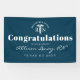 Decorate for a registered nurse graduate's party with this Personalised Nurse Graduation Blue Script Party Banner. It has a minimalist design on dark blue background and white caduceus symbol with "RN" on the upper centre and the occupational title "Registered Nurse." The text is "congratulations to our graduate" followed by the personalised name in trendy hand lettered script. The customised "class of" year is on lower centre. CLICK THE PERSONALIZE FURTHER OPTION AND FOLLOW THE PROMPTS