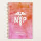 Keep your schedule in order with this Personalised Nurse Practitioner Pink Orange Custom Planner. The background is modern designed with pink and orange watercolor ombre. A white medical caduceus symbol and "NP" in bold white lettering are on the centre. Name is in white trendy hand lettered script on lower middle area. The word "planner" is in white minimal lettering below name.