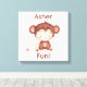 Bring joy and playfulness to any space with this adorable personalised monkey wall art! Featuring a cheerful brown monkey illustration and the affirmation "<name> is fun," this canvas or poster is perfect for kids’ rooms, nurseries, or playrooms. Designed to inspire smiles and positivity, it’s a wonderful gift idea for birthdays, baby showers, or any special occasion. Add a lively and personal touch to your child’s space with this charming artwork!