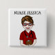 Introduce yourself to your patients or client with this easy to read name button. Cartoon drawing of a brunette female nurse with glasses, physical therapist or caregiver in blue scrubs. Write me here through Zazzle if you want me to do one in your likeness!