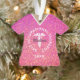 Personalised Occupational Therapist Pink Glitter Ornament is a perfect holiday gift idea for a OT. It is shaped like a scrub uniform top and designed with a pink and gold faux glitter background on both sides of the ornament. A white medical caduceus symbol is on the centre with name in dark dusty rose pink script lettering. The text is "best occupational therapist" in white bold print font. Custom year is across the lower area.