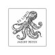 This "Ex Libris" rubber stamp features a Octopus with a custom name.