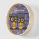 Personalised Old Rustic Aqua Wood Love Bird Owls Wall Clock
