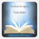 Personalised Open Book Design Bookplate Sticker with customisable text.
