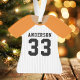 Celebrate your baseball star with this personalised orange and white pinstripe jersey ornament. Perfect for commemorating a special season, player, or team. Customise it with a name and number to create a unique keepsake.