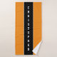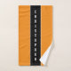 Stylish Orange Bath Towel Set with two thin white stripes and a wide vertical Black stripe on the centre with custom name on it.