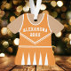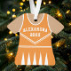 Celebrate your cheerleader's spirit with this personalised orange cheerleader uniform ornament. Perfect for commemorating a special season, team, or individual achievement. Customise it with a name and year to create a unique keepsake.