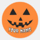 Personalised Orange Pumpkin Halloween Your Name Classic Round Sticker