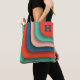 Personalise this orange, teal and blue bag with your initial to show your individual sense of style.