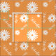 Bold daisy named repeat patterned fabric in orange and white. Ideal for sewing projects for girls. Customise with your own choice of name currently reads Tabitha. The background colour can also be changed if required. Original art and design by Sarah Trett.