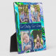 Cute gift for dad for Father's Day, Birthday or Christmas. Just add photos to this photo easel in the personalise area. Lime green and Blue digital marble fluid art.