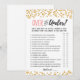 Purchase this editable game and enjoy high quality Over or Under card for your event! Guess whether the actual number is over or under from the amount in the question. This is a game template, You can change the questions as you wish! Gold confetti design.
