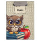 This clipboard features a golden pattern background, adorned with a book owl and apple illustration, perfect for back to school. With a dedicated space for your kid's name, this is truly a one of a kind school supply they will use for years to come.