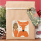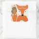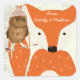 Oh so Big Cute Eyes Owl and Fox Barn Wood Forest Christmas Red Rustic Knitted Hats on Cutest Little Brown Owl and a Orange Sweater on the Fox to keep them warm. Personalised with your names and you message of Love. Ivory Barn Wood Grain Pattern on a Square Sticker
