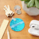 Pretty shades of blue are featured in this design. The stylish text is very easy to personalise.