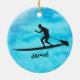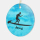 Paddleboarding Personalised Ornament Christmas 20XX. An paddleboarder poses on a board against a blue water background. All text customisable, front and back!