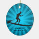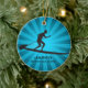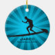 Paddleboarding Personalised Ornament Christmas 20XX. An paddleboarder poses on a board against a blue starburst background. All text customisable, front and back!
