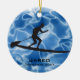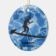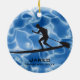 Paddleboarding Personalised Ornament Christmas 20XX. An paddleboarder poses on a board against a blue water background. All text customisable, front and back!