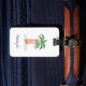 This personalised luggage tag features palm trees, string lights with stylish script typography,