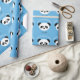 Personalised Panda Bear Kawaii Birthday Boys Blue Wrapping Paper