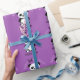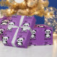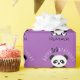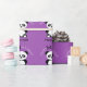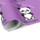 Personalised Panda Bear Kids Kawaii Birthday Wrapping Paper. The background is bright purple, customise to change colour. Add name and age to this cute black and white panda bear design. www.SamAnnDesigns.com