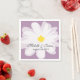 Personalised paper wedding napkins with daisy flower. Chic paper napkins with purple backrgound colour and floral design. Nature design with stylish script calligraphy typography. Make your own unique classy party napkins with name of bride and groom plus date of marriage. Customisable background colour and monogram. Beautiful design for romantic weddings, fancy bridal party, country chic reception dinner party and outdoor garden BBQ's in the summer. Also nice for refined engagement or sophisticated anniversary party if you change the wording. Dinner and Beverage cocktail napkins.