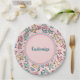 Personalised Pastel Leaves Pink Paper Plate