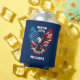 Celebrate your love for America with a striking can cooler design, featuring a bold eagle adorned in vibrant patriotic colours of the American flag and complemented by elegant navy blue custom typography on a blue background. This stunning piece is the ultimate gift for any 4th of July celebration, sure to impress friends and family alike!