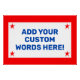Here's a bright red, white, and blue design with stars! Customise with your own words!