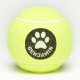 A personalised custom tennis ball with your dog's name and a paw print printed right on it. Click "customise further" to change the colours in the design.