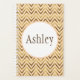 Add modern personality with flair. Customisable centre name text with peach and gold chevron stripe background pattern
