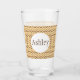 Add modern personality with flair. Customisable centre name text with peach and gold chevron stripe background pattern.