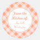 A bright peach gingham pattern decorates these personalised kitchen stickers. Change the name to personalise these stickers. Use these stylish stickers for gifts, baking, etc....The design is from original art.