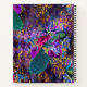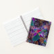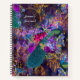 Personalise this notebook with any name you wish inside a gold, peacock feather frame. This bold design showcases a beautiful teal and blue peacock with pink and purple flowers on a purple background with gold embellishments.
