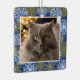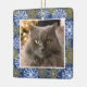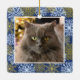 This Christmas ornament allows you to add a custom photo of your pet along with a background of festive winter snowflakes on a dark blue background. Celebrate your pet's first Christmas or memorialise them forever with this lovely ornament.