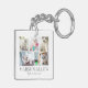 This simple and elegant boho-inspired keychain is a perfect way to celebrate a beloved cat. The design features a space for five photos, with the cat’s name displayed on the top line in a classic serif font. Below, you can add a second line of text, such as "Best Cat Mum Ever," "We Love You," or turn it into a memorial with "Forever in Our Hearts." The clean white background and soft grey text create a timeless and refined feel. Fully customisable, you can adjust the text, fonts, colours, and photos to make it a truly personal keepsake.