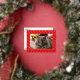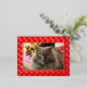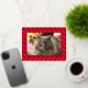 A gorgeous Christmas or holiday postcard with an adorable REAL GOLD FOIL paw print pattern on the front with a red background and gold border around your own custom pet photo.