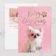 Spread cheer with this modern on trend stylish holiday pet theme photo card perfect for dog and cat lovers! Featuring an overlay of words Merry Christmas in a handwritten script modern typography style and matching paw print in faux gold foil. Add 2 photos OR keep Sparkle the Tiny Chi for added glam and your personal message to this chic fun holiday pet photo design and make it your own one-of-a-kind original holiday card. Second photo on back. PHOTO TIP: Pre-crop your photo similar to template photos BEFORE uploading and/or use the CROP tool in the PERSONALIZE section to adjust placement within the template area. For help with design or personalisation or transferring design to another product, contact designer BEFORE ORDERING via the Zazzle Chat MESSAGE tab below or email thepetstarofficial@gmail.com. For more fun follow @sparklethetinychi on Instagram and Facebook © Marisu Valencia - All Rights Reserved