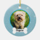 The perfect Christmas Tree decoration for dog lovers! This festive holiday ornament features a favourite photo of your dog with a dog bone nameplate that can be personalised with their name, all on a snowy background.