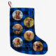 Personalised Pet Photo Collage Blue Black Plaid Small Christmas Stocking