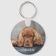 A simple and minimal double sided custom dog photo and name keychain, featuring one photo and your dog's name in a modern font on the front and back. Simple to customise by adding your dog's photo and name.