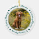 Customise with favourite pet dog or cat photos, and name . Ornament is double sided, you can do 2 favourite photos, one on each side. Personalise name on the front, and dates on the back. Perfect for a Christmas Memorial Ornament.