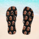 Flip flops personalised with your favourite pet's photo. Upload a regular picture or a cutout with a transparent background and it will automatically be replicated all over the shoes. To make the cut-out, you can download any mobile or computer app (download a transparent png file).