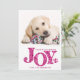 Personalised Pet Photo JOY Pink Paw Print Dog Holiday Card