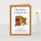 Personalised Christmas Card with family photo on the inside. You can personalise your own holiday greeting too on the inside of the card! Front of card has country and western style graphics with a cowboy hat, boots, teddy bear, poinsettia in festive holiday colours.