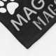 Black Personalised blanket for your dog. Customisable with your dog or cat photo image with your dog or cat's name. When you change the name Maggie to your own pet's name it will change all the typographical names at the same time. Word cloud art typography. Different font type and styles in black, grey and white paw prints.