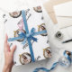 Give your holiday gift wrapping a personal touch with this custom design, featuring a pattern of black and gold Christmas ornaments and the phrase "Merry Christmas" in elegant black handwriting script. Add your family's name and replace the sample image (framed by the ornament and repeated as part of the pattern) with your own favourite family photo.