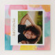 This colourful watercolor jigsaw puzzle features playful circles and dots in bright pastel hues, personalised with your grandchild's name and photo. It's a fun and unique keepsake that makes a thoughtful gift for grandparents, parents, or anyone who loves a personalised touch. Perfect for family game nights or a special memento to cherish those precious memories, this trendy design adds a cheerful and artistic flair to any puzzle collection.