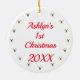 Memories keepsake Christmas tree trim ornament. The front frame around your picture is bordered with a red white and green candy cane style stripe. The back has crossed candy canes around the border. Change the name, which Christmas and year to suit. (Or you can put entirely different text for personalisation if desired. ) You could also adjust the personalisation to be for a couples Christmas, or even your pet.