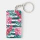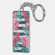 Personalised Photo Exotic striped Flowers Monogram Key Ring
